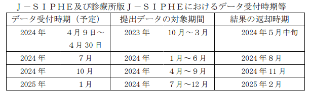 ※ データ提出方法及びデータ受付時期並びに結果の返却時期の詳細については、J-SIPHE及び診療所版J-SIPHEのホームページを確認すること。